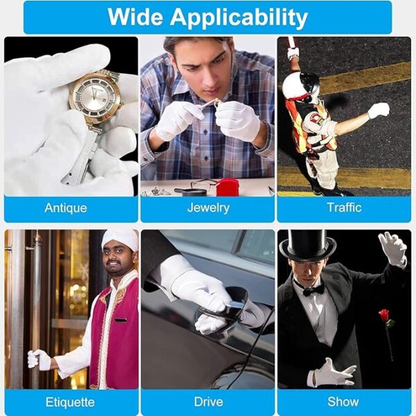 AM SAFE-X White Cotton Gloves are crafted from soft, breathable cotton fabric to provide comfort and protection for a variety of uses. These reusable gloves are ideal for hand moisturizing treatments, formal events, costume wear, jewelry inspection, and handling delicate items. Their lint-free design and snug fit ensure a clean, professional appearance while offering gentle protection for sensitive skin. Perfect for home, beauty, industrial, and ceremonial purposes, these white cotton gloves are easy to wash and reuse, offering both value and versatility.