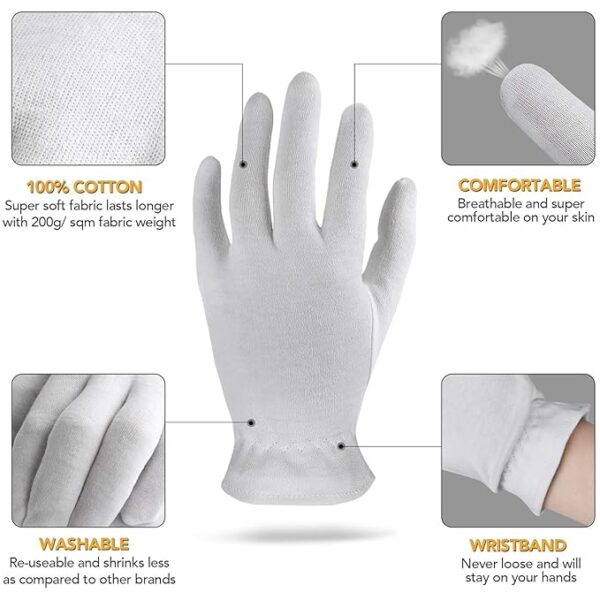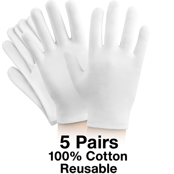 White Cotton Gloves | 5 Pairs | Soft & Reusable | Lint-Free | Comfortable Fit | for Moisturizing, Inspection, Custom, Formal & Daily Use