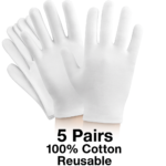 White Cotton Gloves, Lint-Free, 5 Pairs