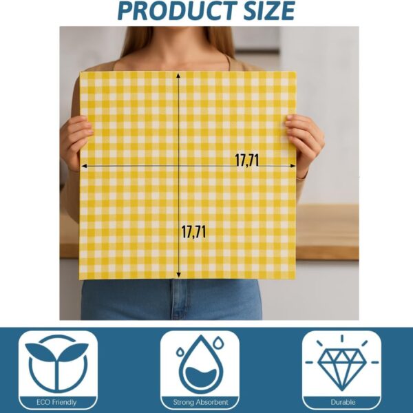 - Highly Absorbent & Quick-Drying: These reusable napkins are made from soft, absorbent fabric that soaks up spills quickly and dries fast, making them ideal for wiping kitchen counters, dishes, and hands.