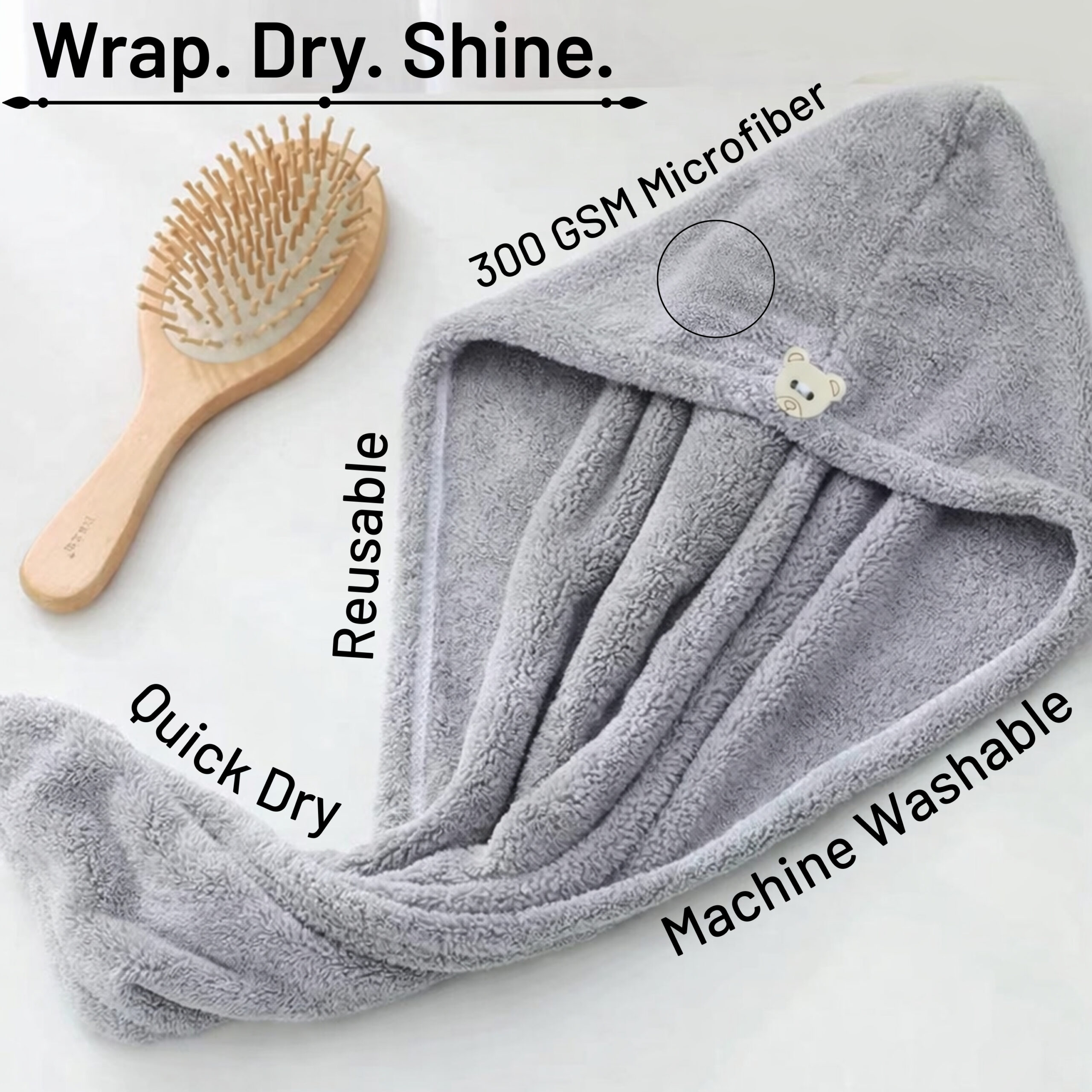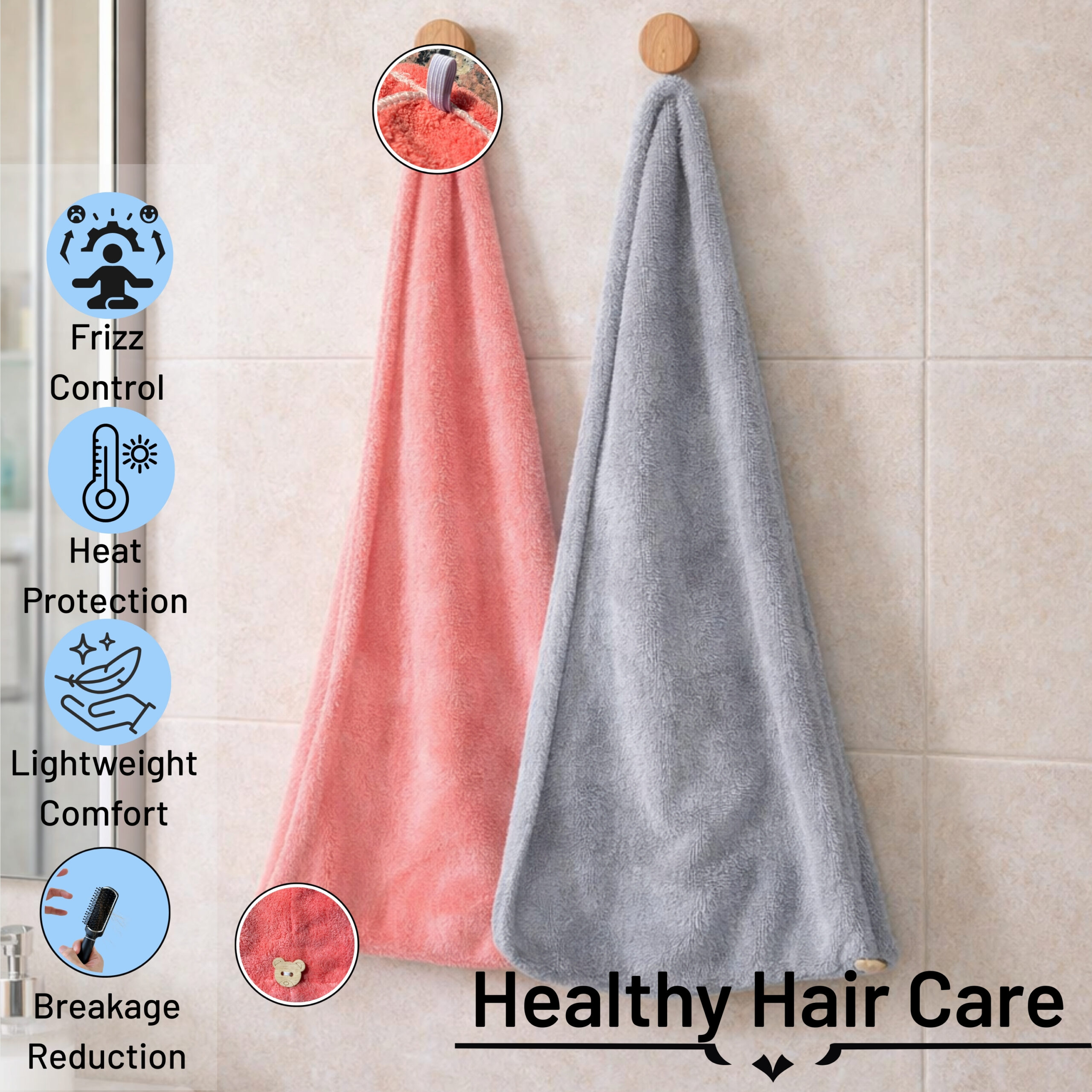 Microfiber Hair Towel Wrap | Quick Dry | Soft Fabric | Elastic Loop Fastening | Reusable | Lightweight | All Hair Types