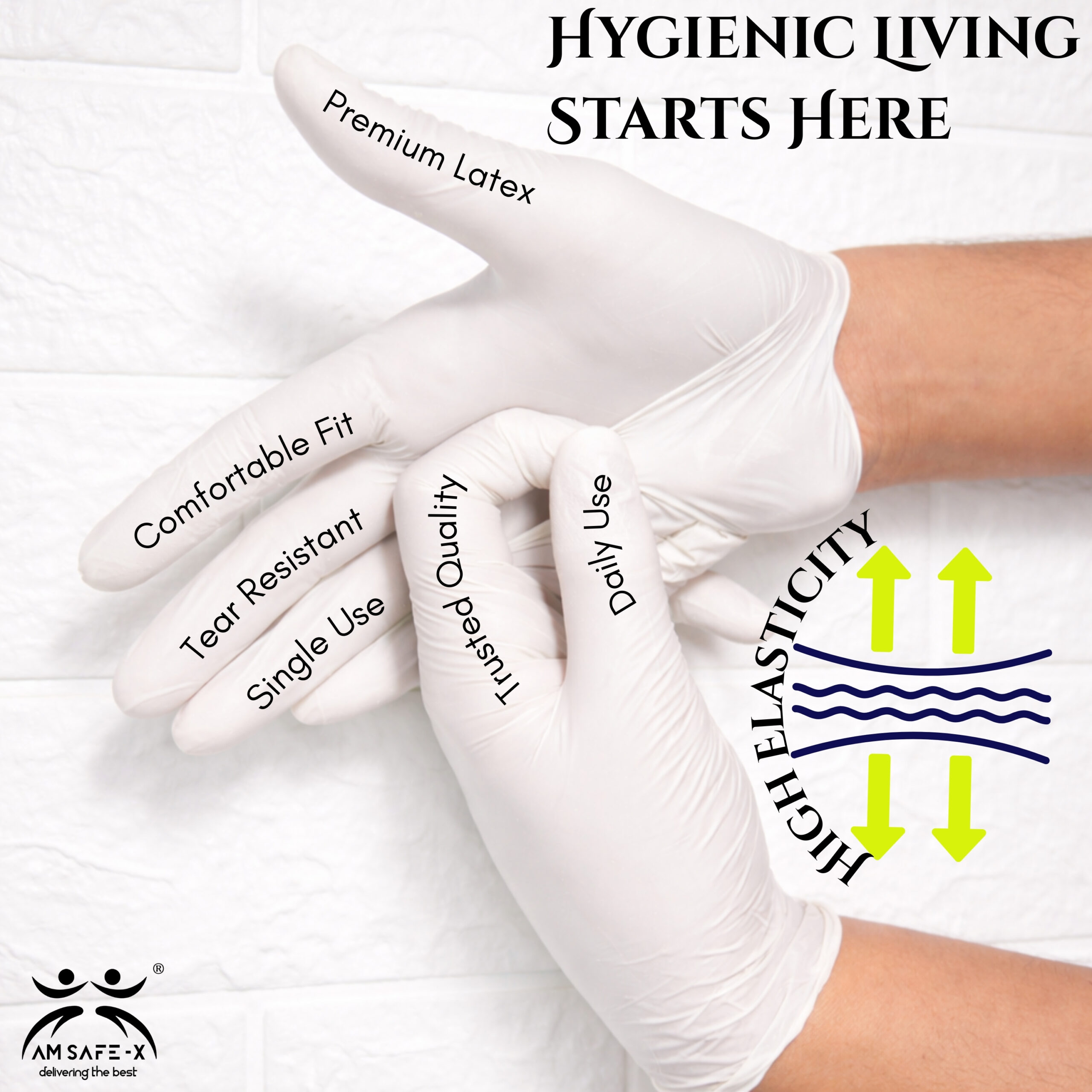 AM SAFE-X Latex Gloves are engineered for reliable protection, hygiene, and comfort across medical, food handling, cleaning, and industrial applications. Made from high-quality natural latex, these white powdered gloves offer excellent flexibility, tactile sensitivity, and a secure fit for extended use.