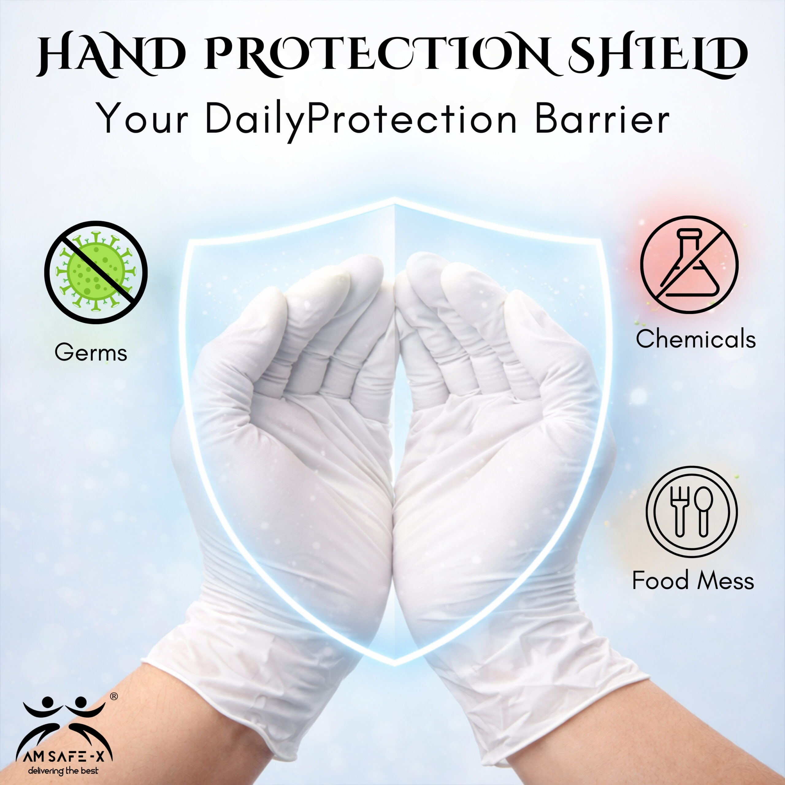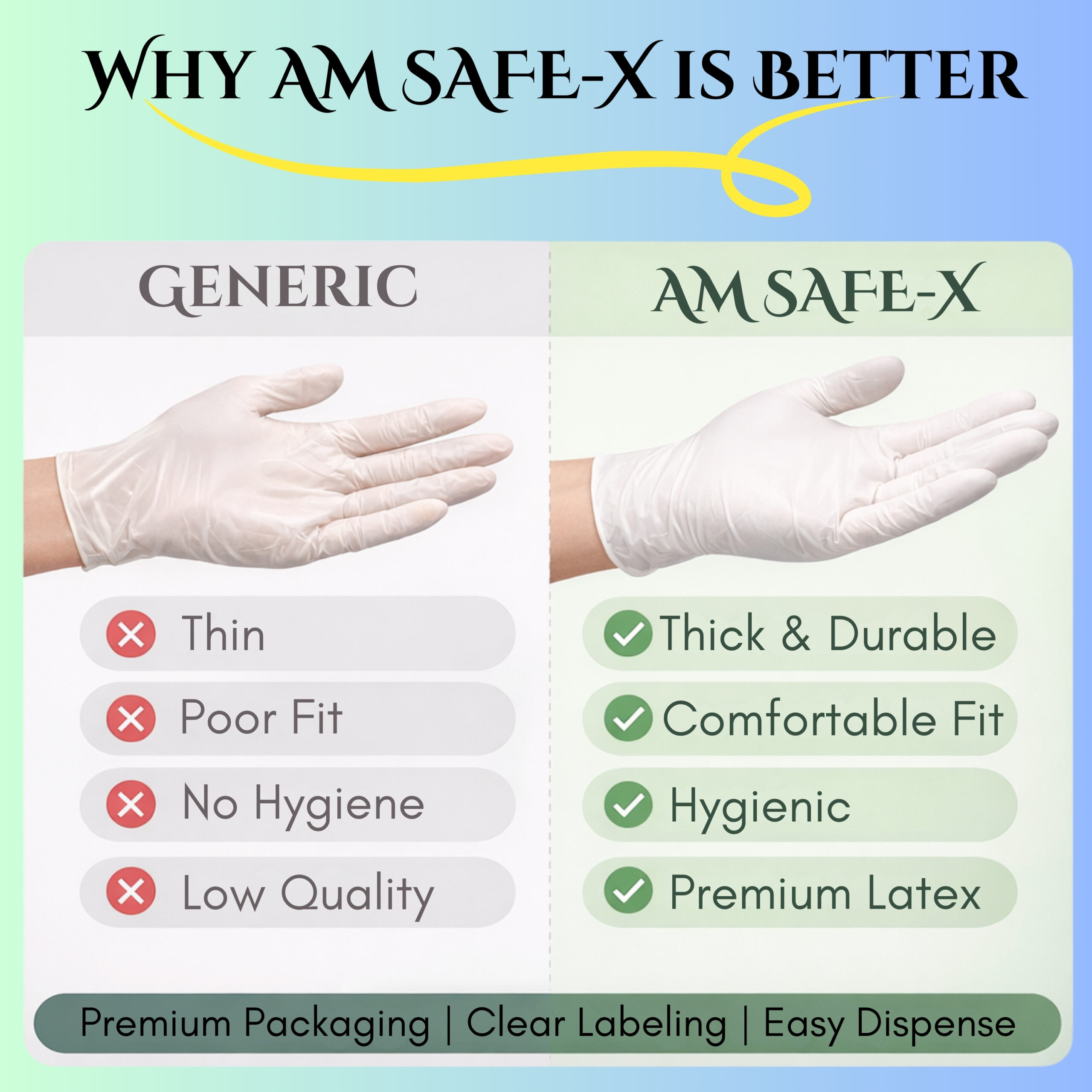 CE-certified for quality and safety compliance, the gloves feature a textured surface for enhanced grip in wet or dry conditions, while the lightly powdered interior allows quick and easy donning. Ideal for healthcare professionals, kitchens, laboratories, households, and commercial environments, AM SAFE-X gloves deliver dependable performance in every task.