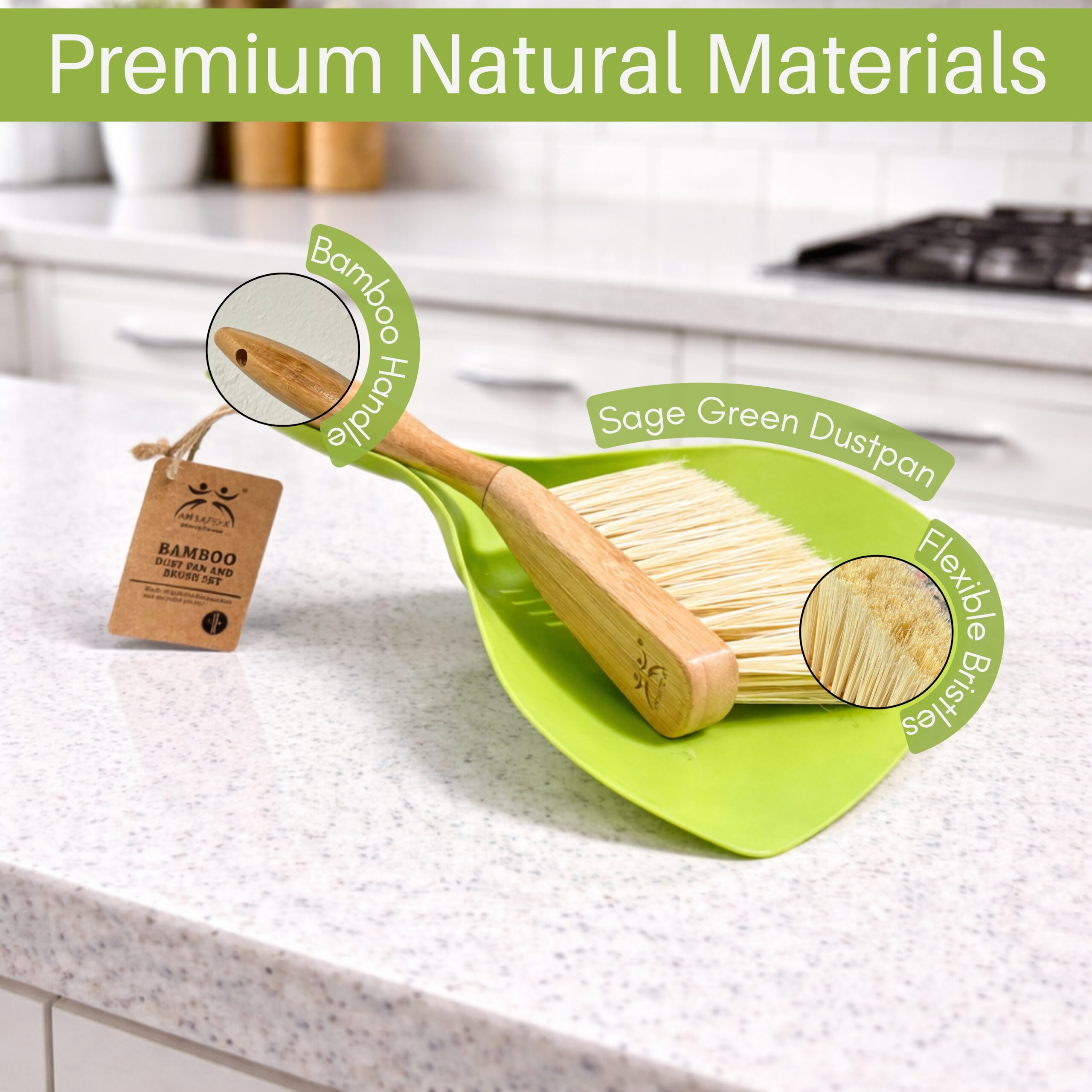 • Natural Bamboo Bristles — Durable and effective for fine dust removal