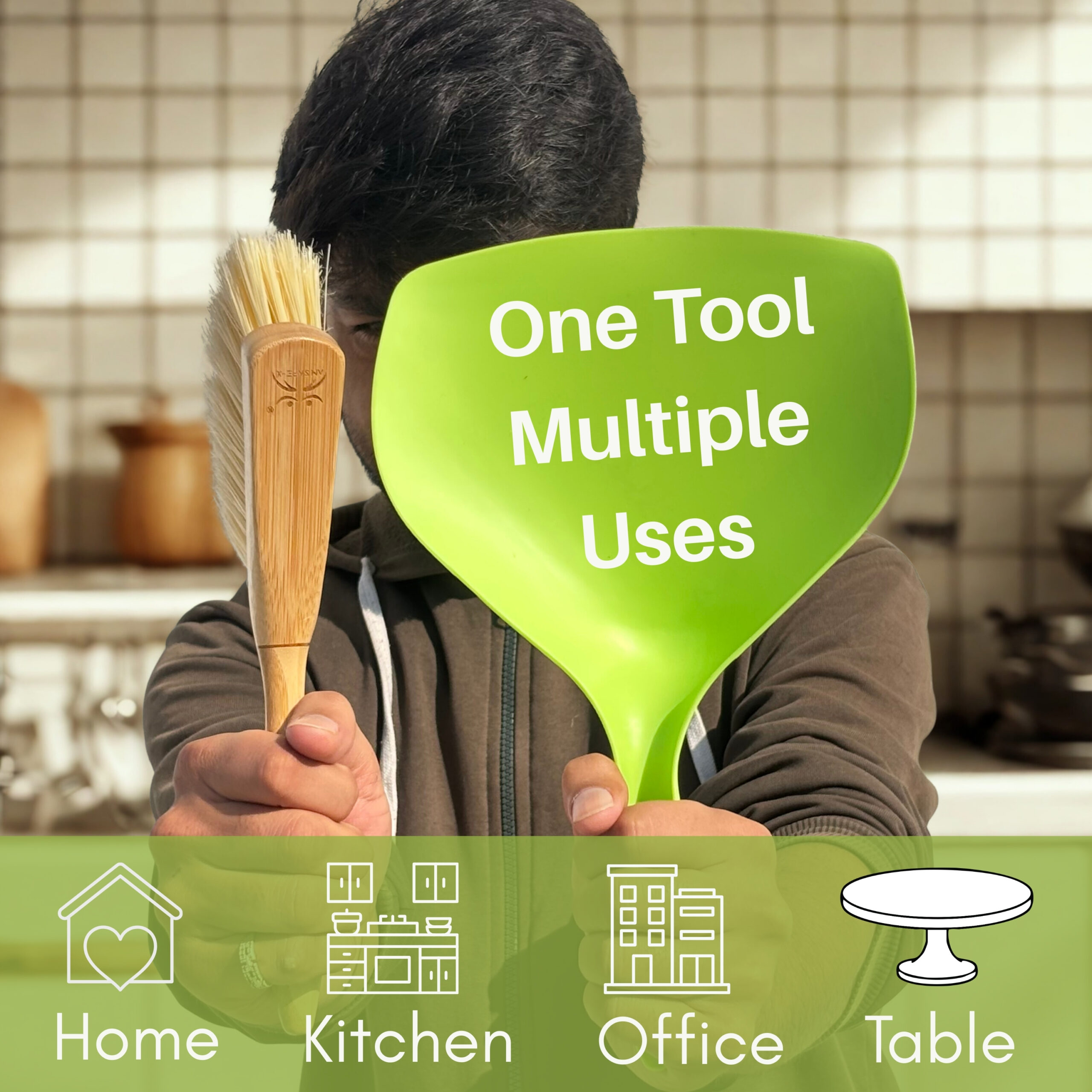 AM SAFE-X Mini Bamboo Broom and Dustpan Set is a practical and eco-friendly cleaning solution. It is designed for quick and efficient spot cleaning. This compact cleaning kit is crafted with natural bamboo bristles. The lightweight dustpan is ideal for sweeping dust, crumbs, and small debris from tables, countertops, floors, and workspaces.