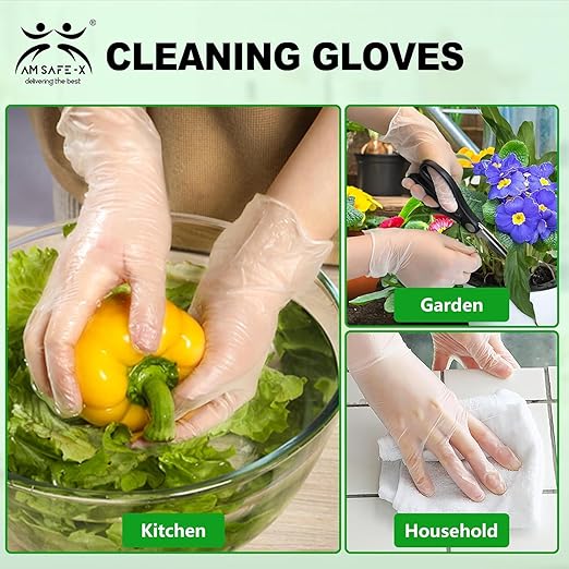 - Vinyl Examination Gloves | Latex-Free Rubber | Powder-Free | Ultra-Strong | Clear | Disposable | For Food, Cleaning, Healthcare | 100 Pieces